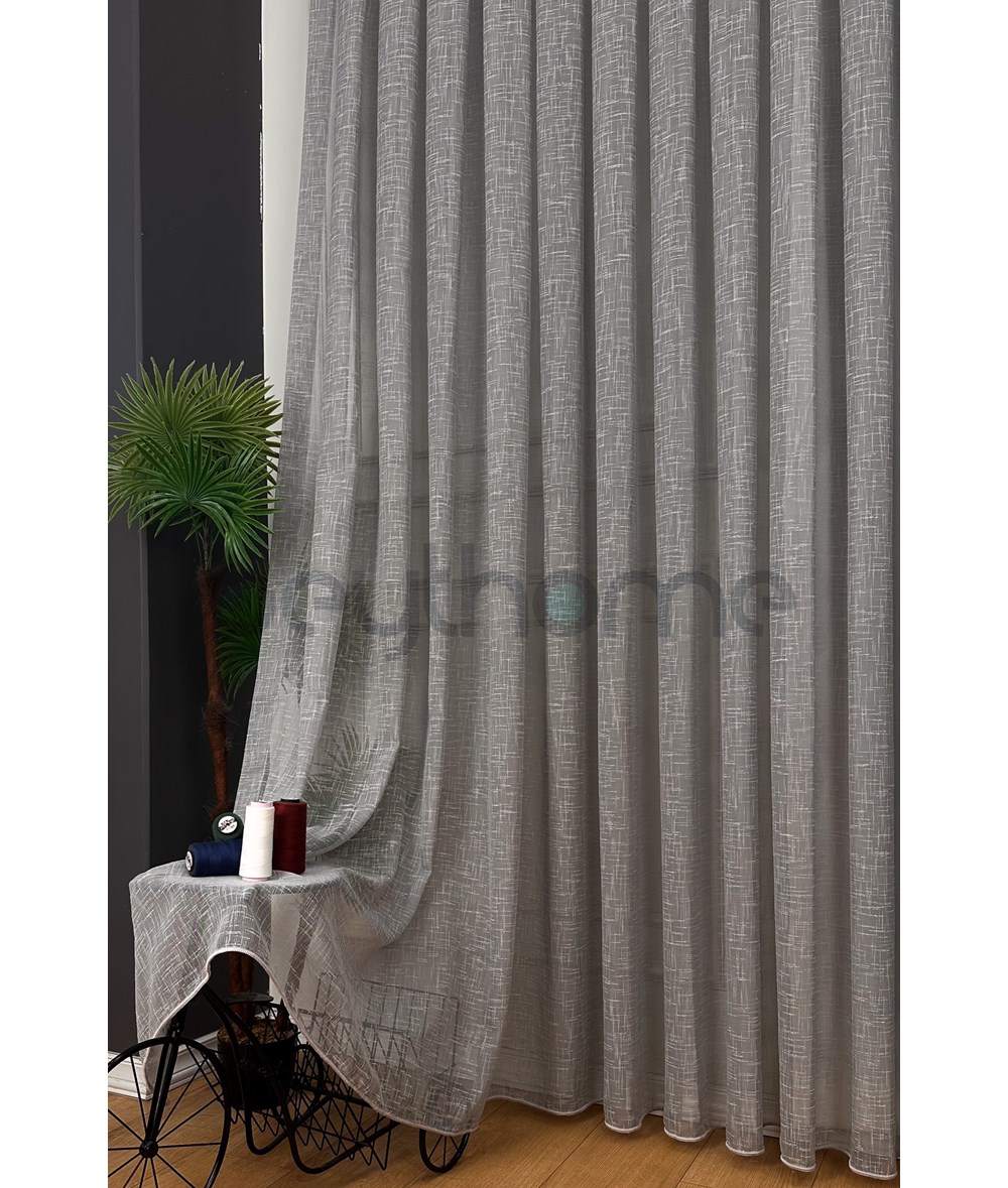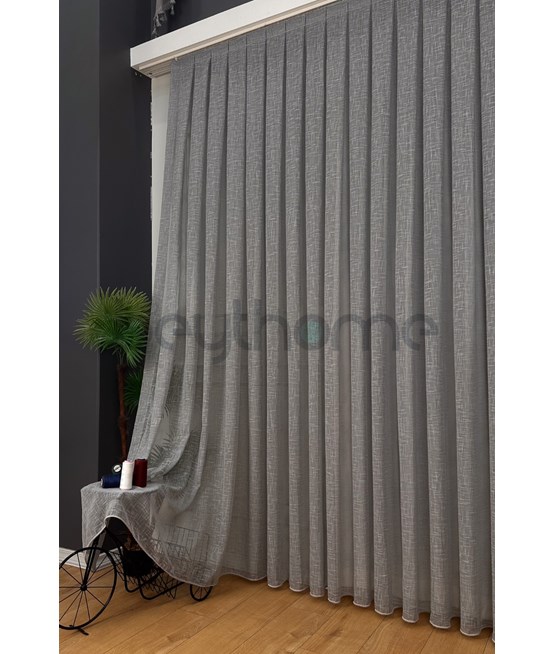 Buhera Keten Tül Perde Gri