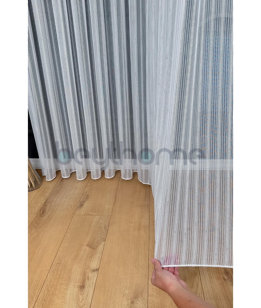 Gümüş Simli Keten Çift Makarna Tül Perde Ekru
