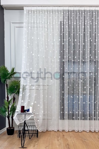 Yıldız Örme Tül Perde Ekru