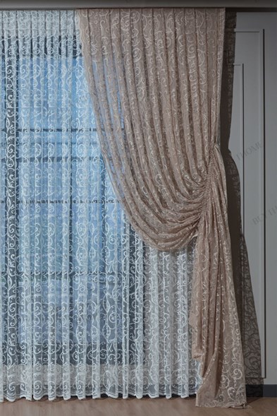Toz Pembe Mozaik Büzgülü Tül Fon Perde Toz Pembe