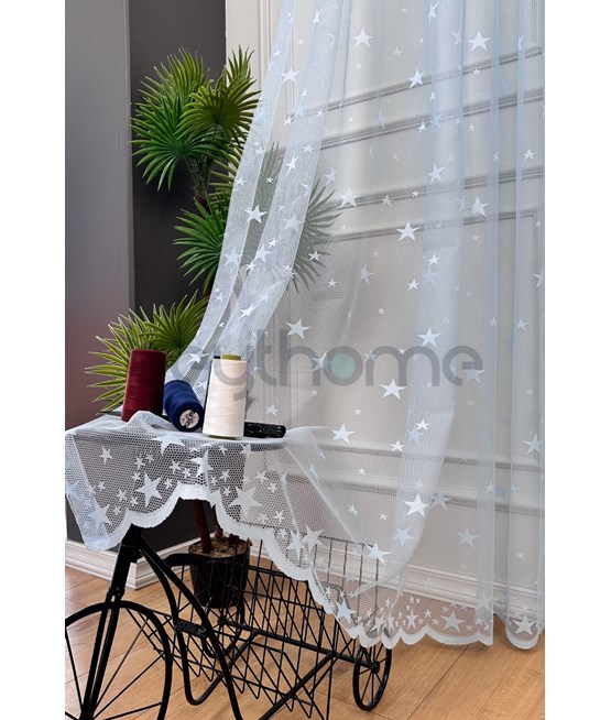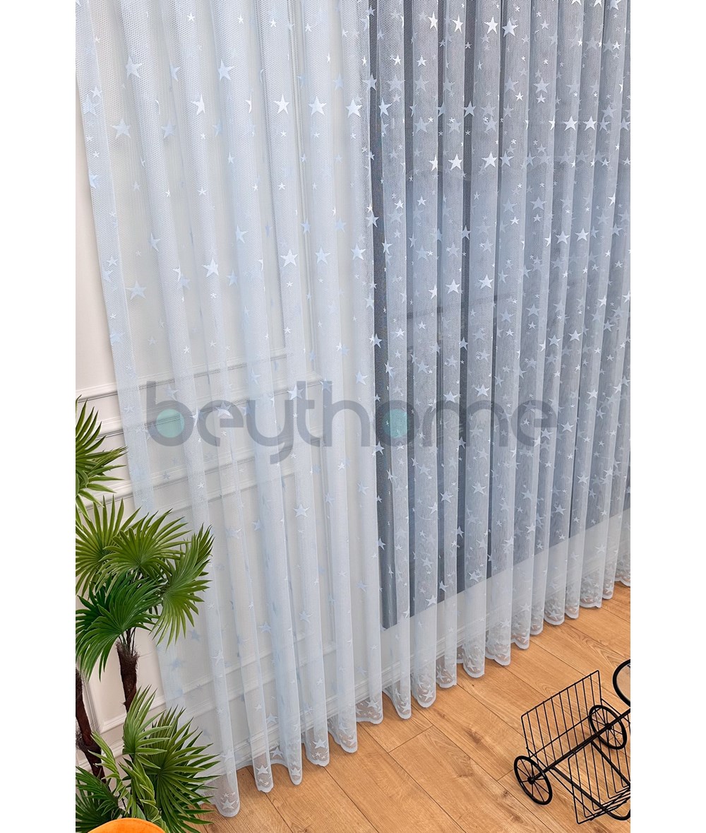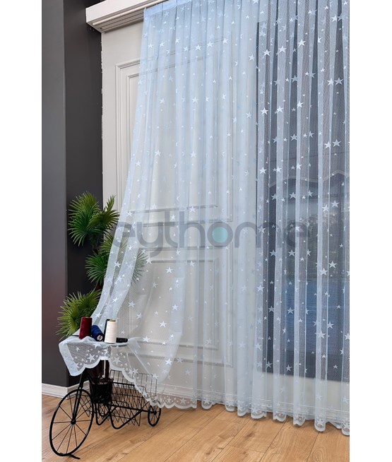 Yıldız Örme Tül Perde Mavi